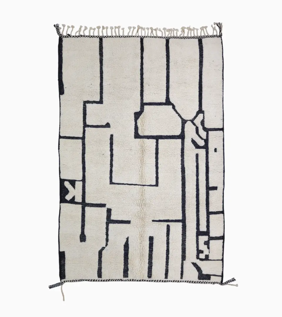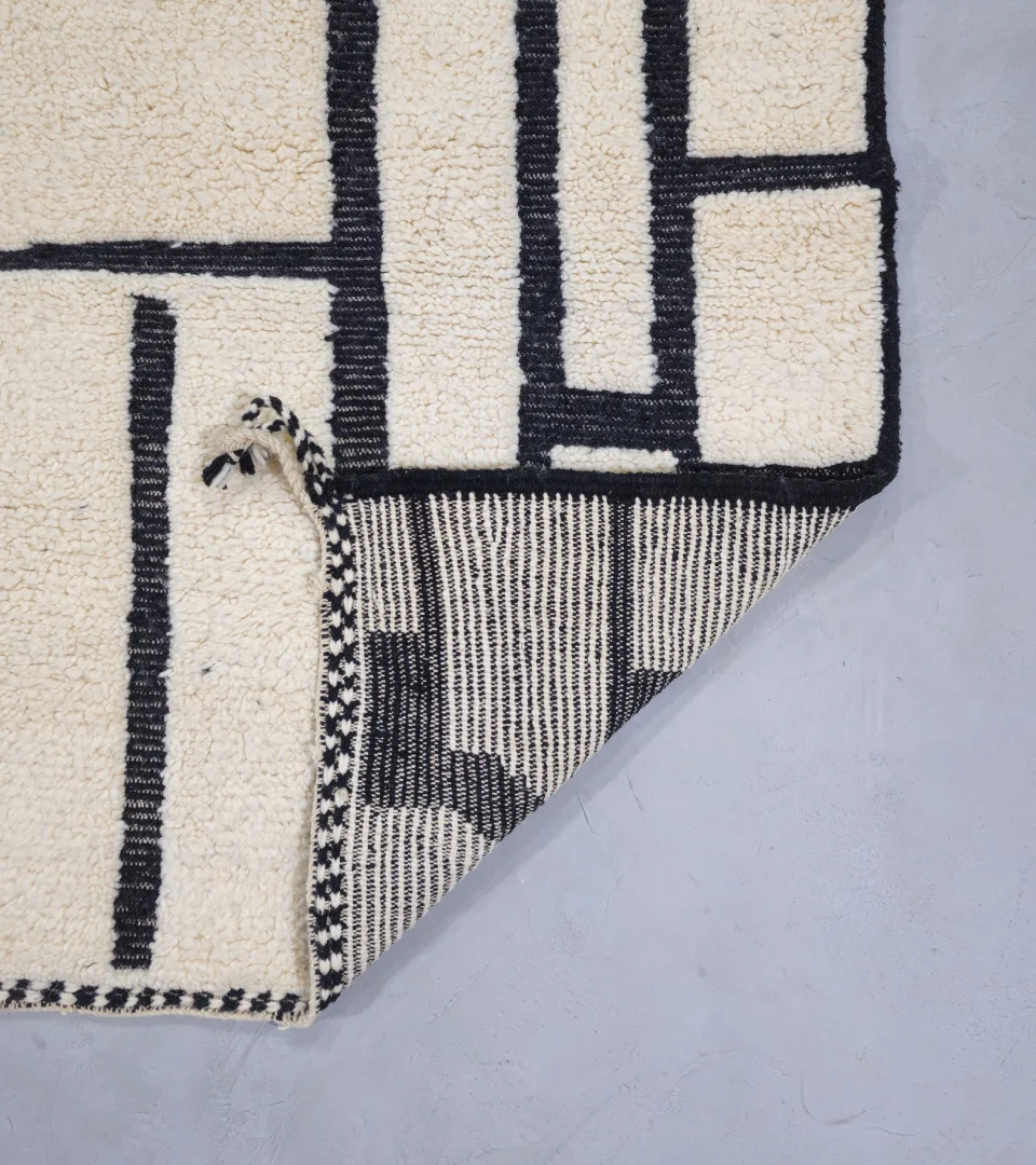 Bring the timeless artistry of Morocco into your home with this handcrafted neutral striped rug. Woven by skilled artisans, its unique abstract grid pattern and bold lines echo centuries of Moroccan tradition. Made from pure wool, its dense hand knotted weave is soft yet durable, offering both comfort and longevity.