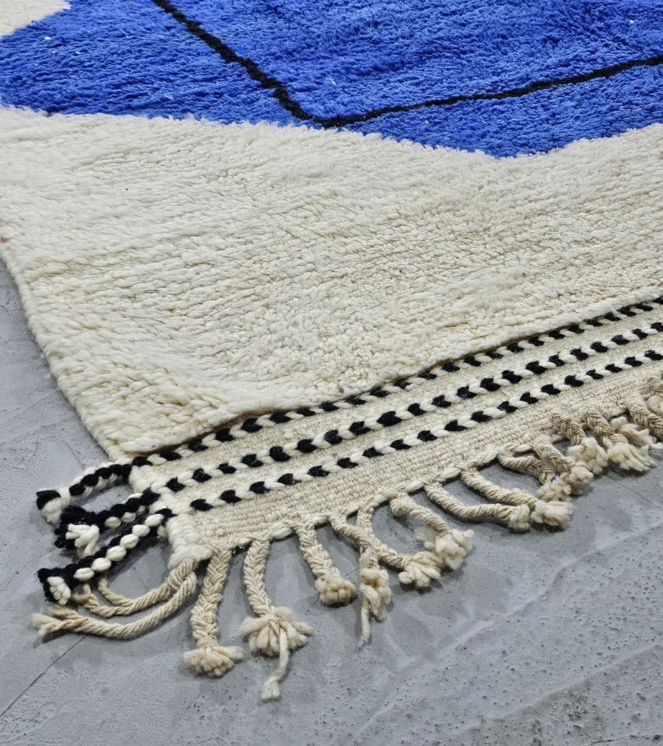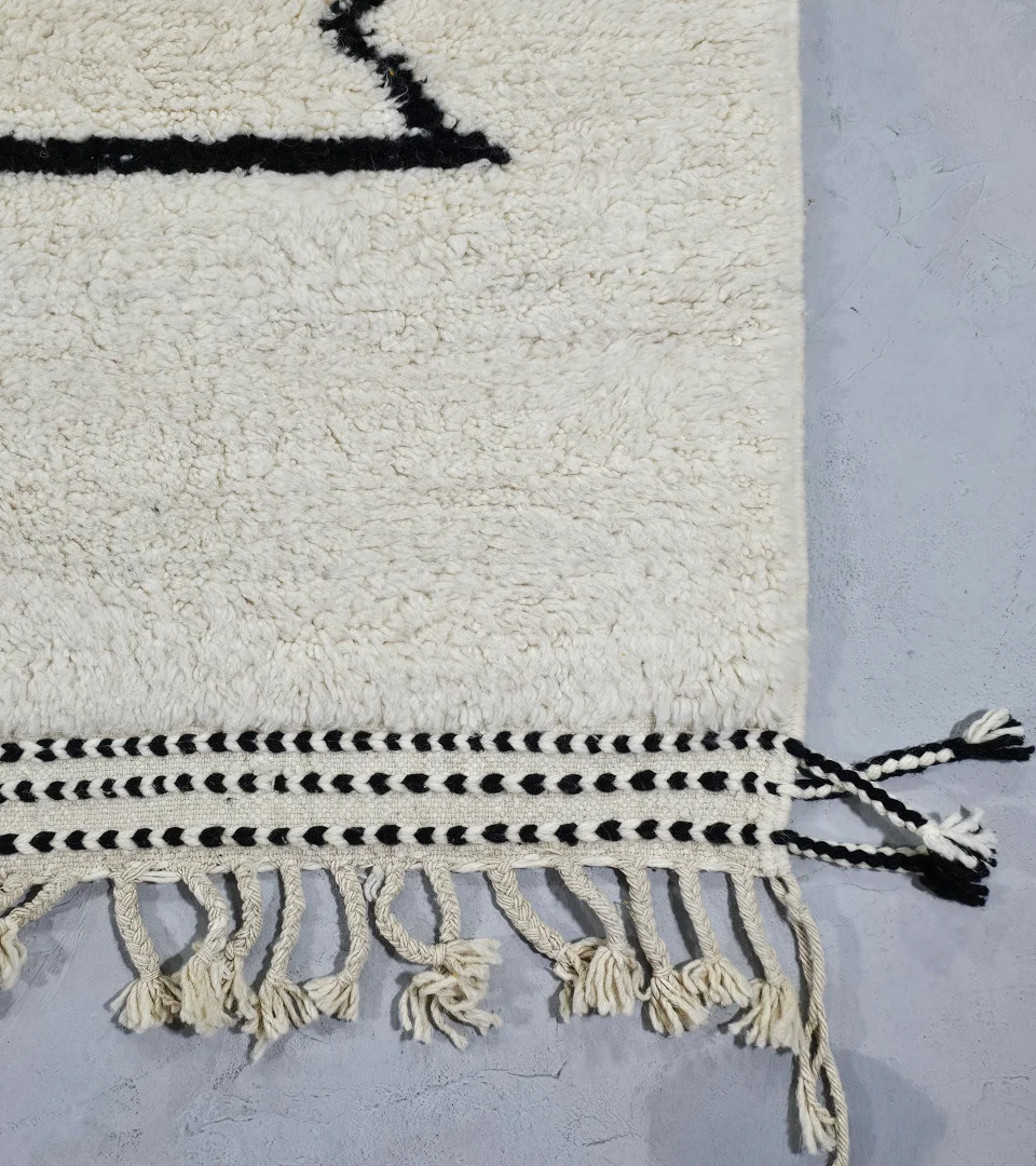 Finished with unique black-and-white border detailing and contrasting tassels, Mira blends contemporary edge with artisanal tradition — ideal for design-forward living spaces.