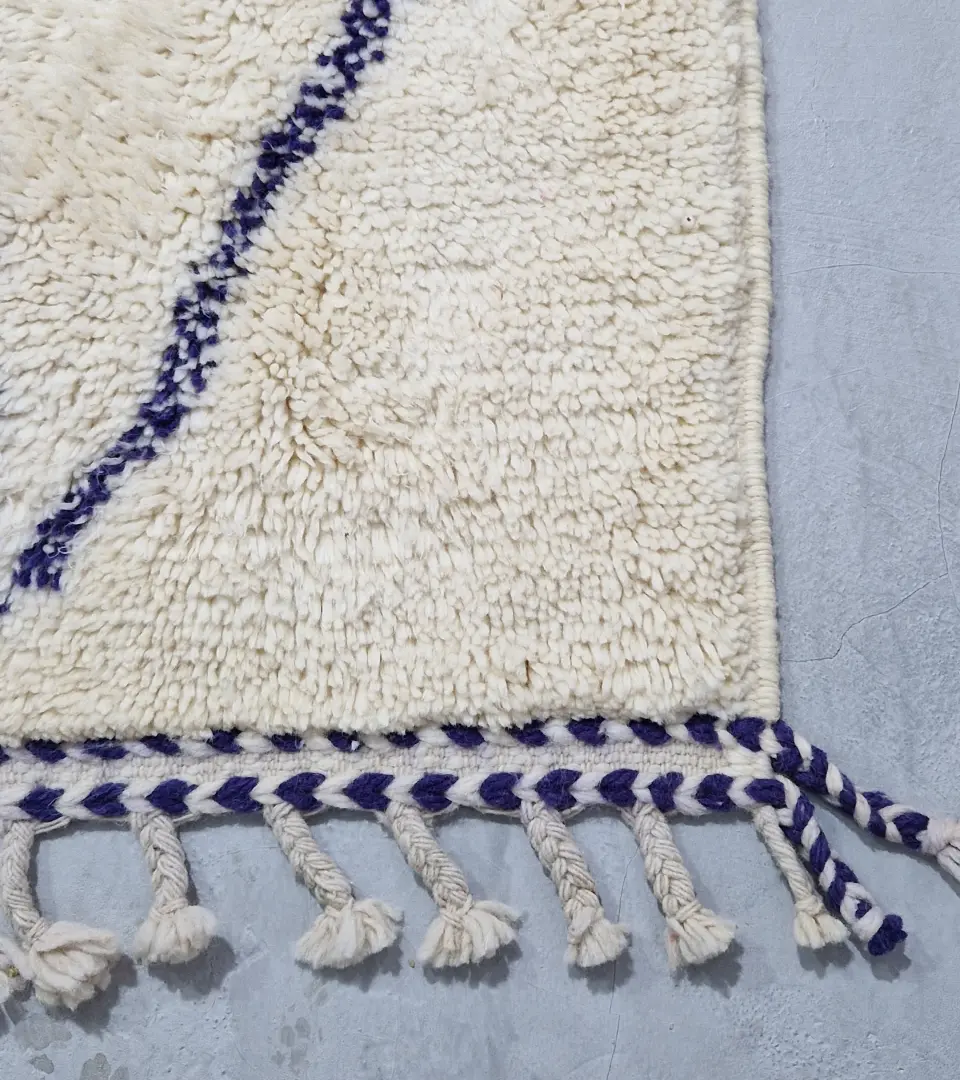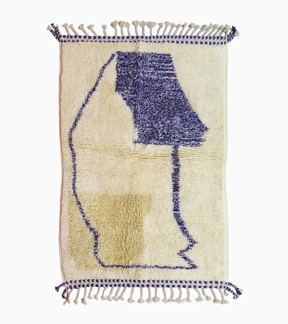Introduce a piece of modern artistry to your home with the Toda, a hand-knotted Beni Ourain wool abstract rug. Hand-crafted by skilled Berber artisans in the Moroccan Atlas Mountains, this plush, high-pile rug features a captivating abstract design of organic shapes. A bold, fluid form in cobalt blue and a soft, textured shape in a creamy beige seem to float on the plush ivory background, creating a dynamic and contemporary look. The luxurious high pile provides a soft feel underfoot, making it a comfortable and stylish focal point.